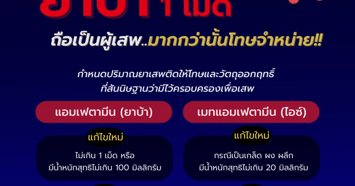 มีผลบังคับใช้แล้ว ยาบ้า 1 เม็ด ถือเป็นผู้เสพ มากกว่านั้นโทษจำหน่าย!!