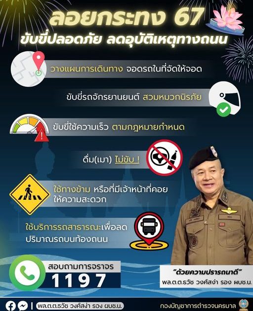 ลอยกระทง 67 ขับขี่ปลอดภัย ลดอุบัติเหตุทางถนน 13 พฤศจิกายน 2567 โดย metrodiv6 / ข่าวประชาสัมพันธ์ จำนวนผู้เข้าชม : 40