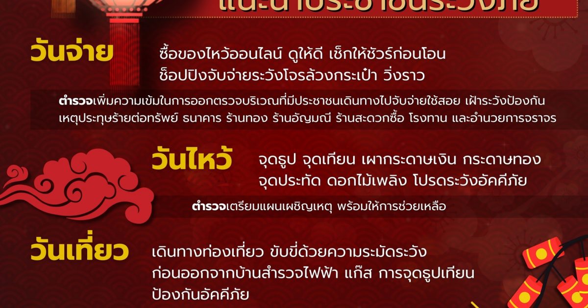 สำนักงานตำรวจแห่งชาติมีมาตรการเข้ม ดูแลประชาชนช่วงเทศกาล #ตรุษจีน 2568 ทั้งวันจ่าย วันไหว้ วันเที่ยว แนะระมัดระวังภัย