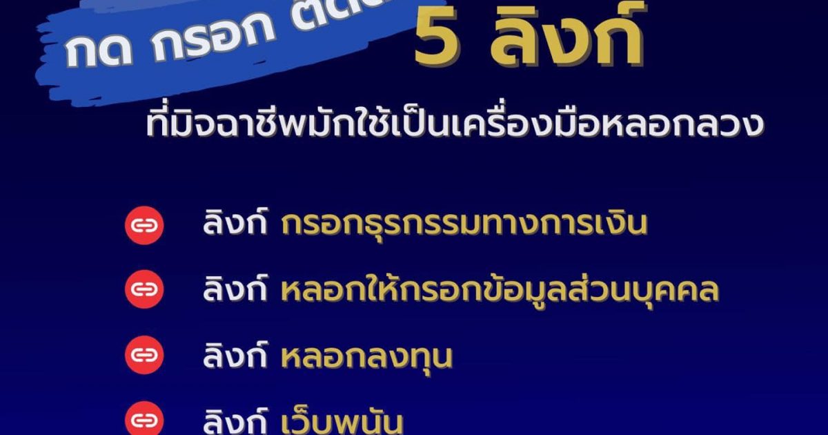 ห้าม !! กด..กรอก..ติดตั้ง 5 ลิงก์ ที่มิจฉาชีพมักใช้เป็นเครื่องมือหลอกลวง