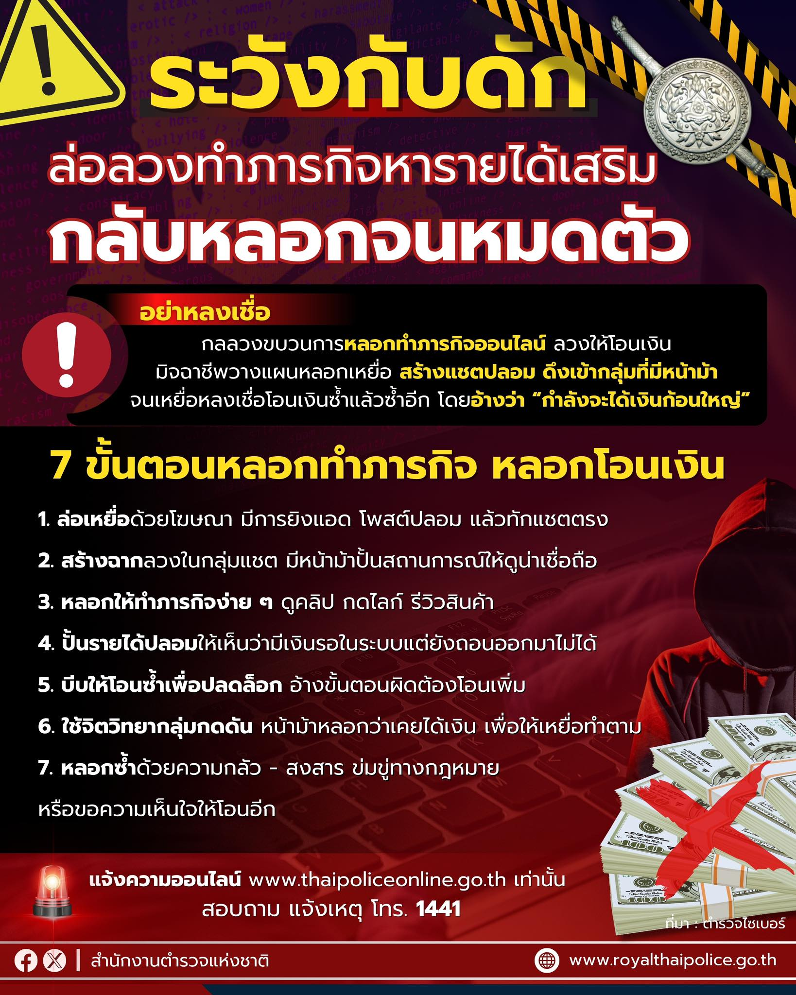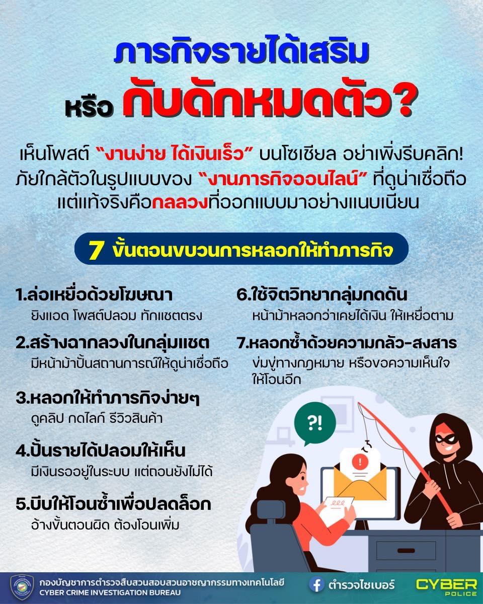 ระวังกับดักกลลวงมิจฯ ลวงทำภารกิจหารายได้เสริมที่แท้กลับหลอกจนหมดตัว